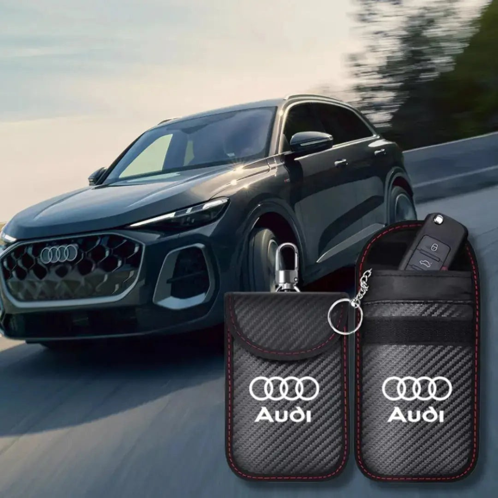 Protect your car keys from relay attacks with this Faraday pouch. Once the key is inside, the signal is blocked and your car no longer responds to wireless theft attempts.
